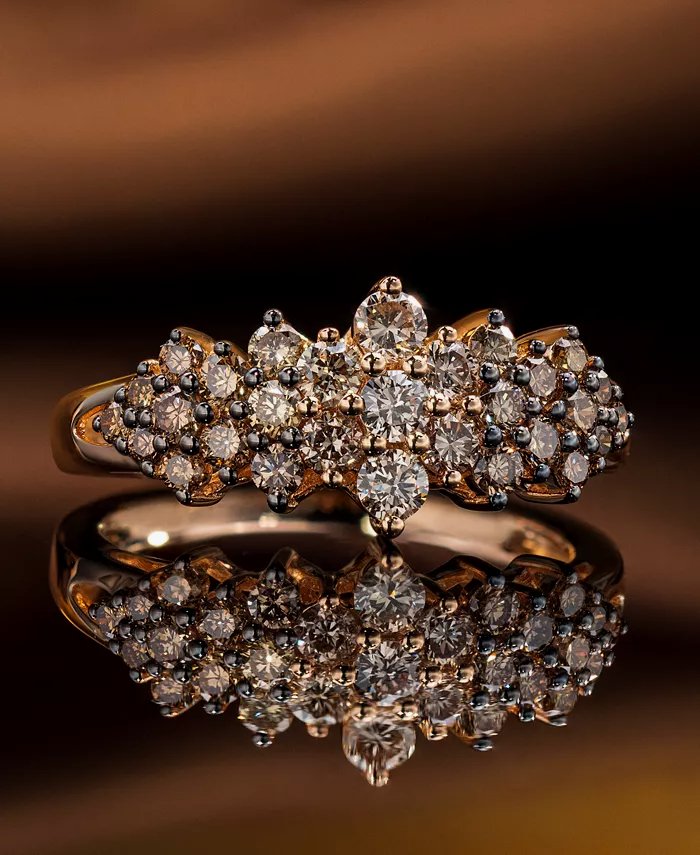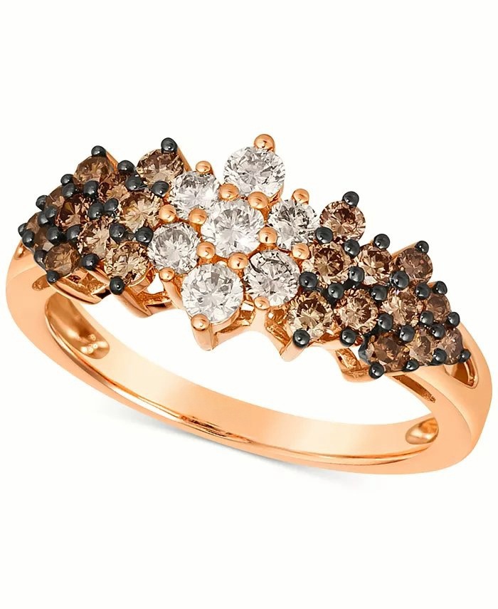 Both sparkling and delicious, this stunning cluster ring is set with decadent Chocolate Ombr