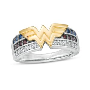 Blue Sapphire, Garnet and Diamond Tiara Ring in Sterling Silver and 10K Gold
